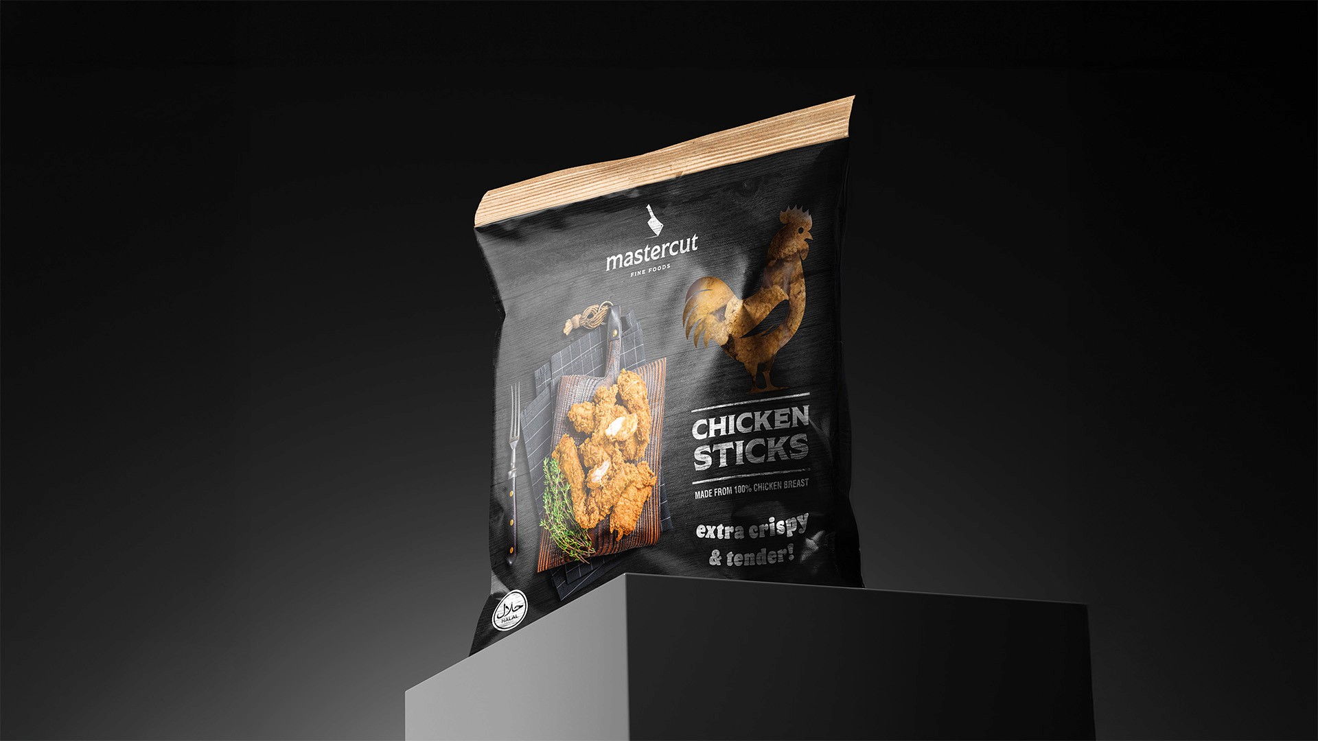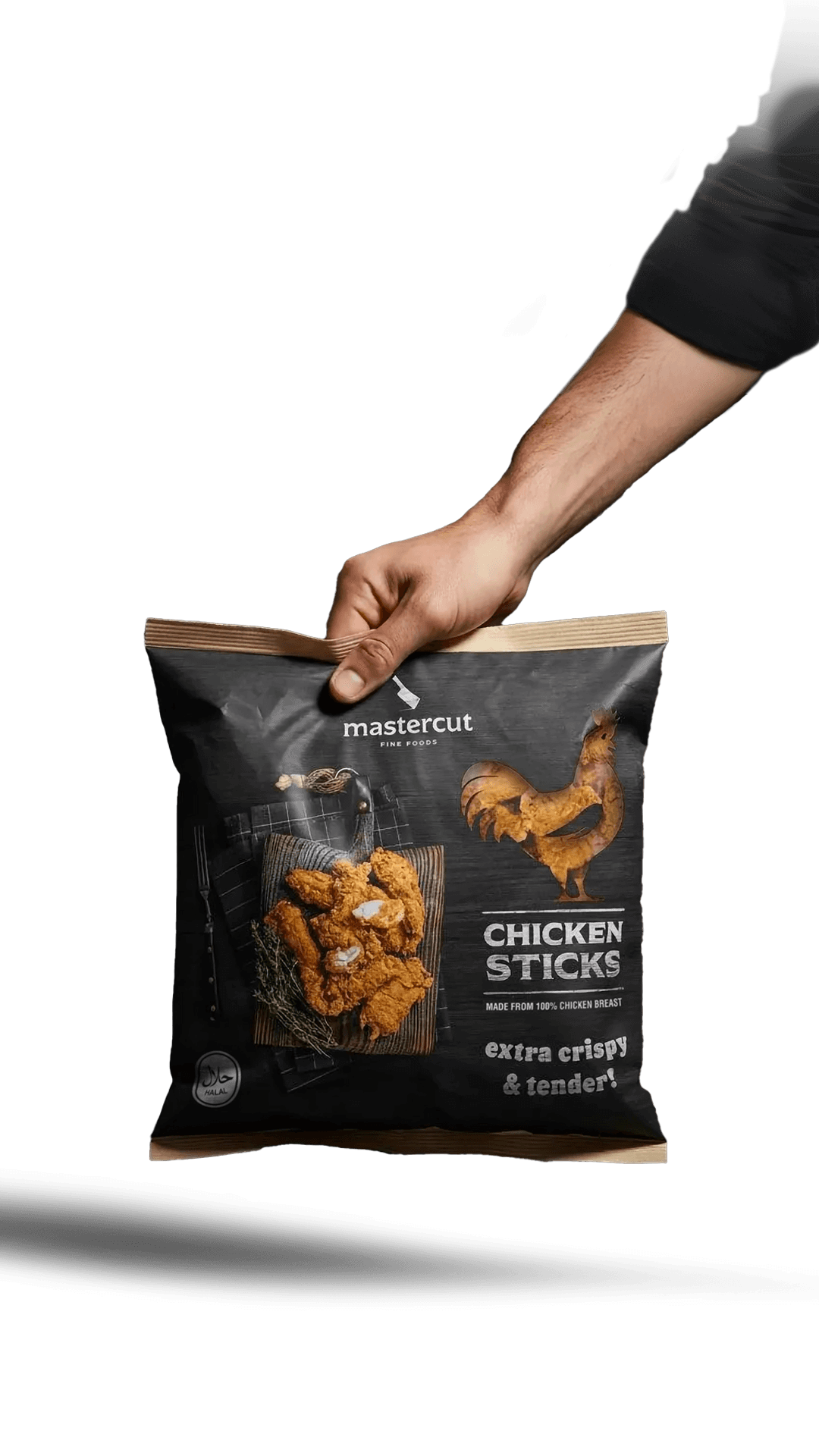 Frozen chicken products often rely on generic visuals and closed packaging, making it difficult to communicate quality and trust. The challenge was to create a pouch design that immediately stands out in the freezer aisle, feels premium and authentic, and clearly shows the product inside - while staying true to Mastercut’s established brand identity.