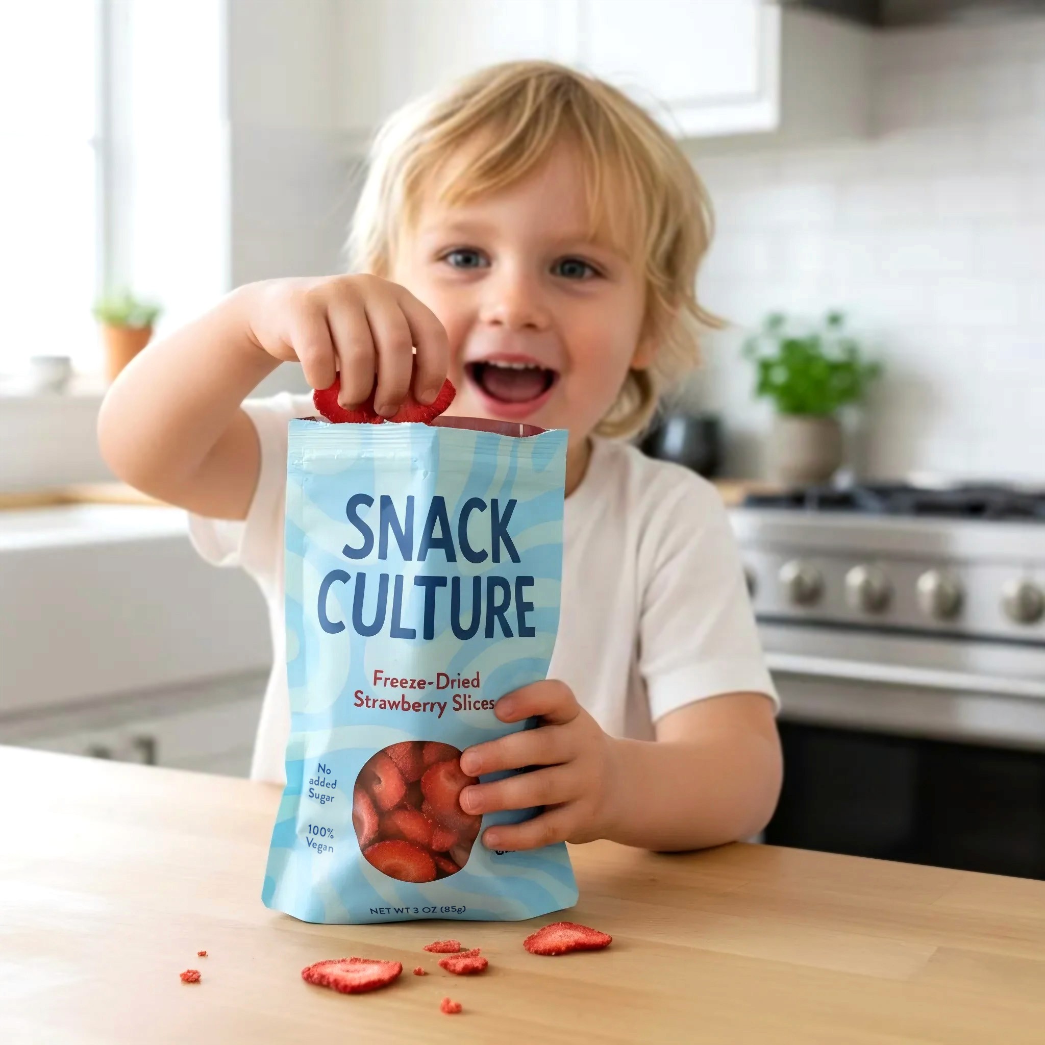 The resulting packaging is vibrant, confident, and instantly recognizable on shelf. By letting the natural product remain visible and pairing it with a fresh, modern visual language, Snack Culture presents healthy snacking in a way that feels fun, trustworthy, and ready to scale across future flavors.